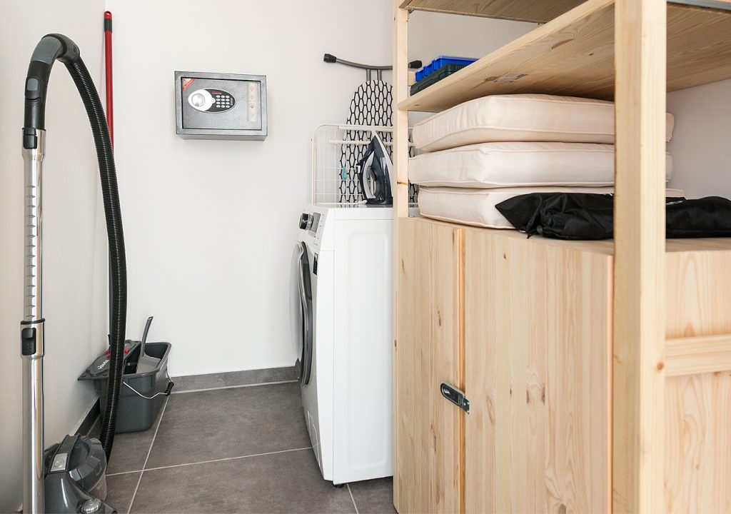 Im Hauswirtschaftsraum befindet sich ein moderner Waschtrockner zur kostenlosen Verwendung sowie ein Bügeleisen und Bügelbrett. Ein Staubsauger und Handfeger stehen bei Bedarf bereit.