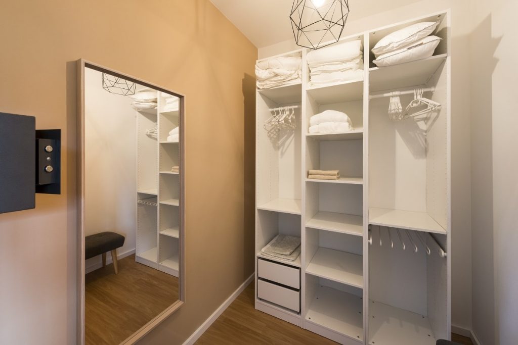Das Schlafzimmer ist mit einem elektrisch verstellbarem großen Boxspring-Doppelbett (180x200cm) ausgestattet, um Ihnen die Möglichkeit zu geben Ihre Liegeposition stets zu perfektionieren. Das bodentiefe Fenster bietet Ihnen zugleich einen direkten Durchgang zur Terrasse.