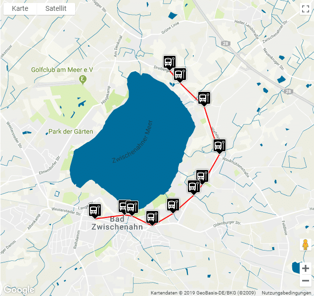 Insgesamt ist Bad Zwischenahn durch mehrere Buslinien an andere Städte wie Oldenburg oder Westerstede angebunden. Von der Ferienwohnung aus ist die nächste Bushaltestelle “Bad Zwischenahn – Am Delf” nur ca. 40m entfernt.